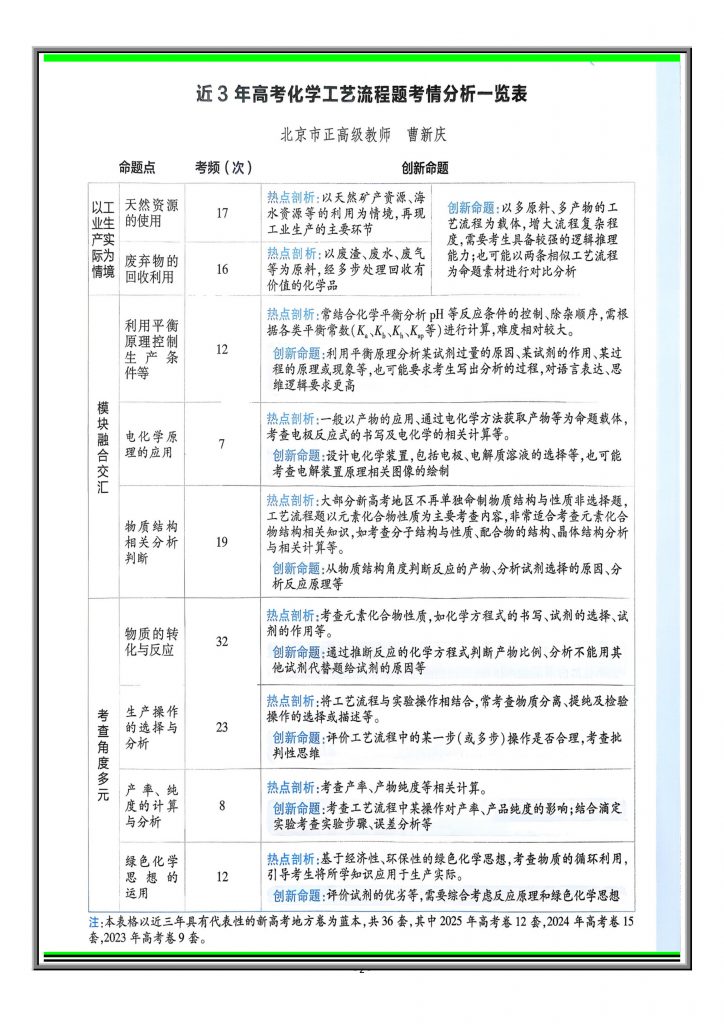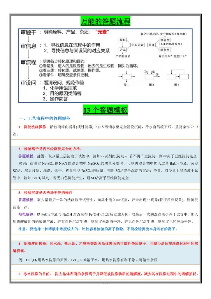高考化学工艺流程题答题模板构建