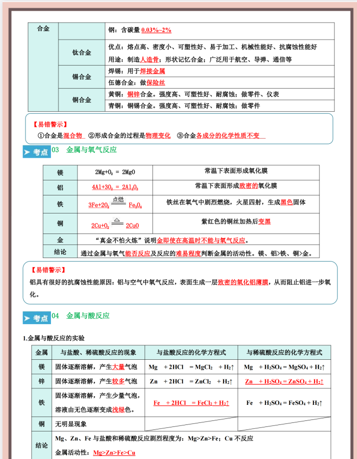 2026版初中【化学知识清单+43大核心考点】9年级下册(化学)通用版