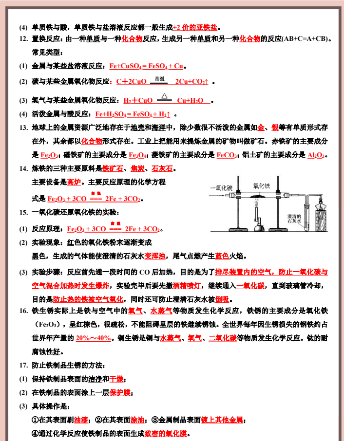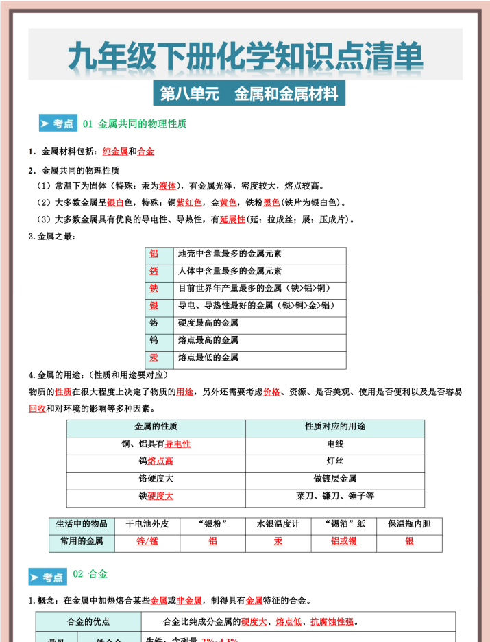 2026版初中【化学知识清单+43大核心考点】9年级下册(化学)通用版