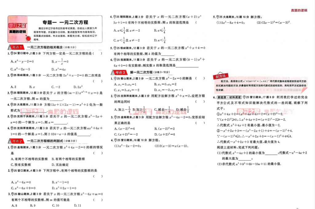 2025秋数学《学习之星 真题的逻辑》7-9年级(人教)