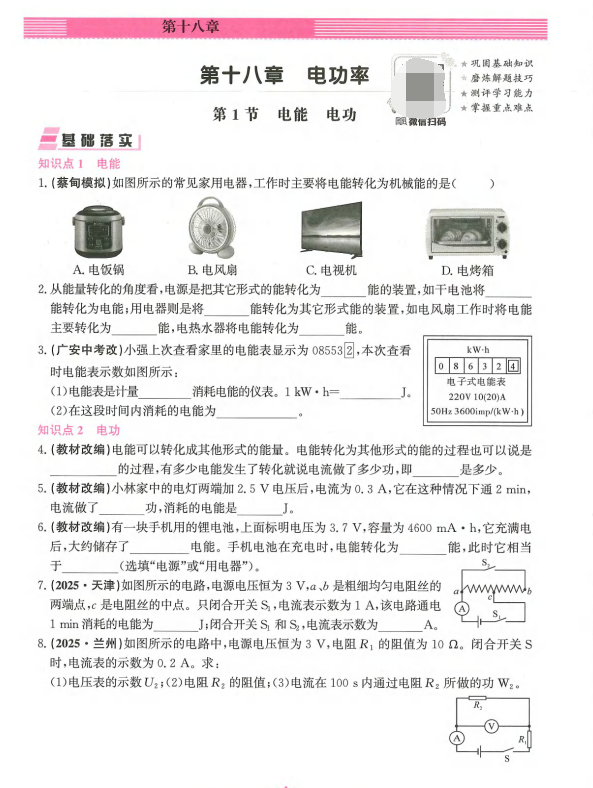 2026版初中【思维新观察】物理(课时作业+专题训练 )9年级下册