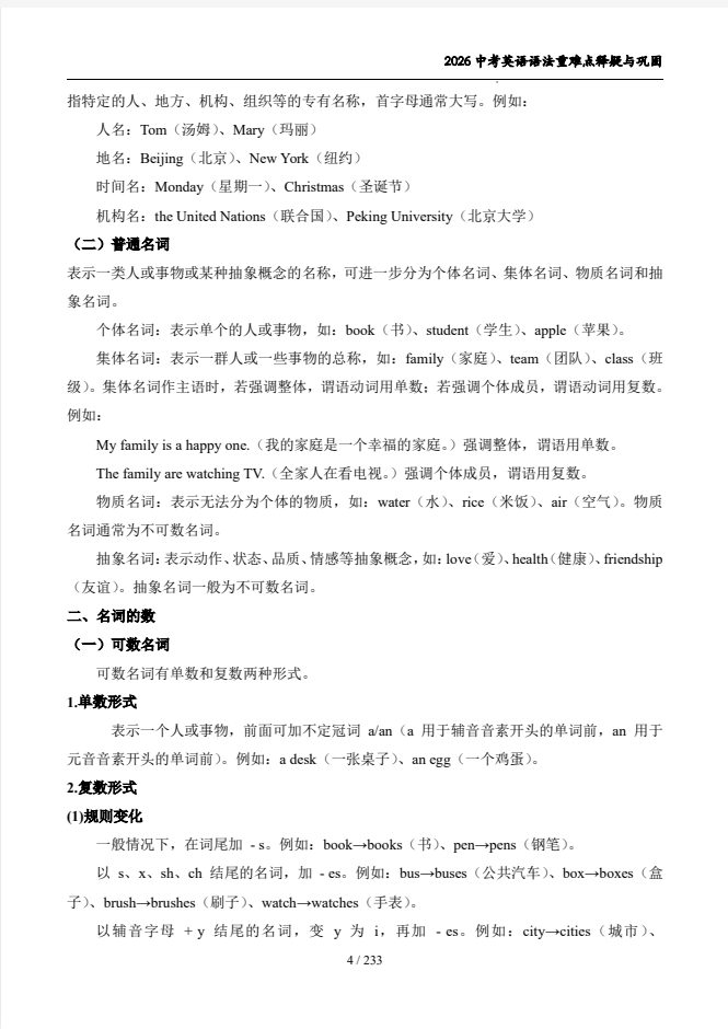 2026年初中《中考英语重难点释疑与巩固》18个语法专题+题型特训+解析
