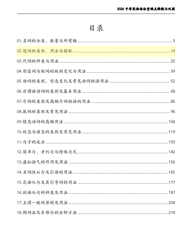 2026年初中《中考英语重难点释疑与巩固》18个语法专题+题型特训+解析