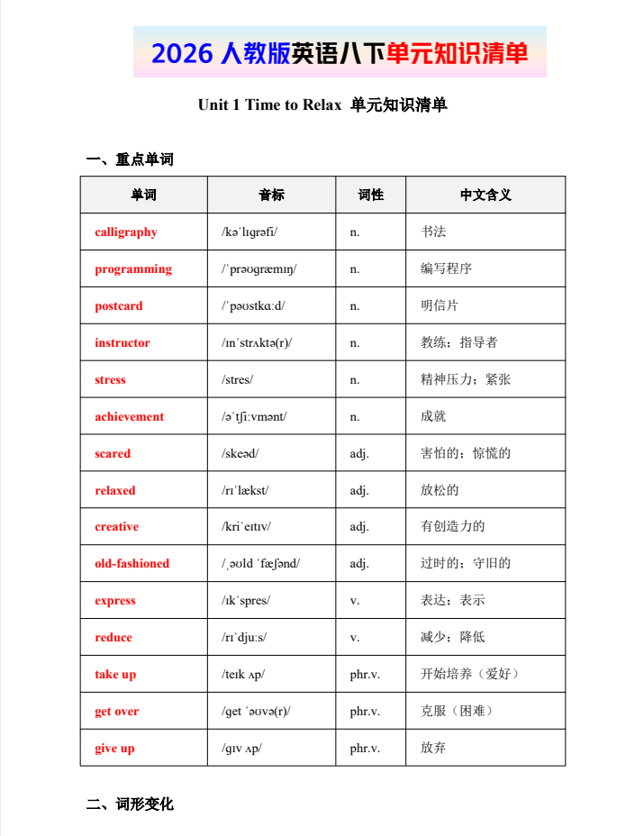 2026版初中【预习资料包】78年级下册(英语)
