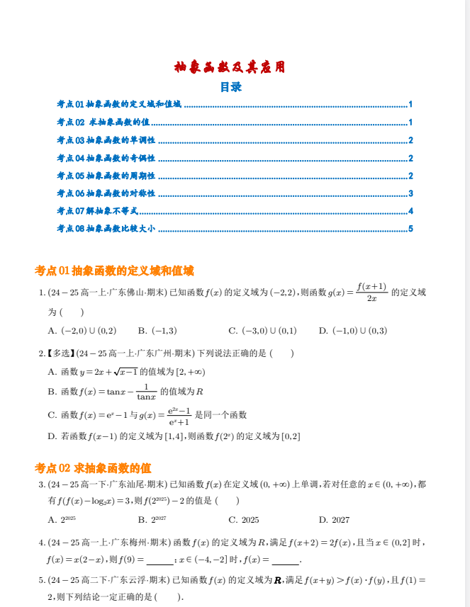 高一数学上期末必考点【抽象函数及其应用】真题汇编