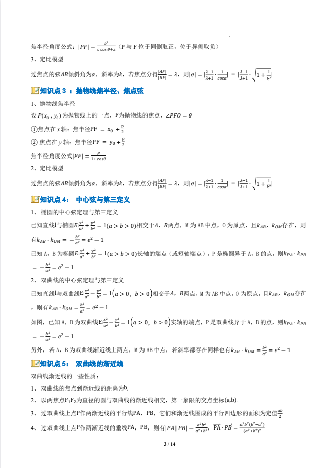 圆锥曲线选填题秒杀技巧(8重点+8题型+复习提升)(人教A版选择性必修第一册)