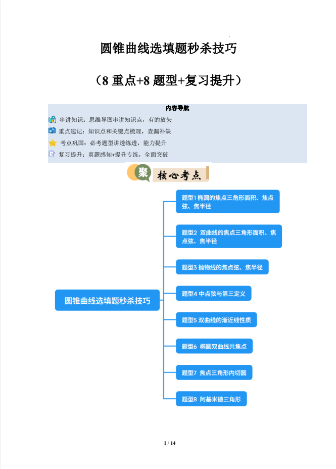 圆锥曲线选填题秒杀技巧(8重点+8题型+复习提升)(人教A版选择性必修第一册)