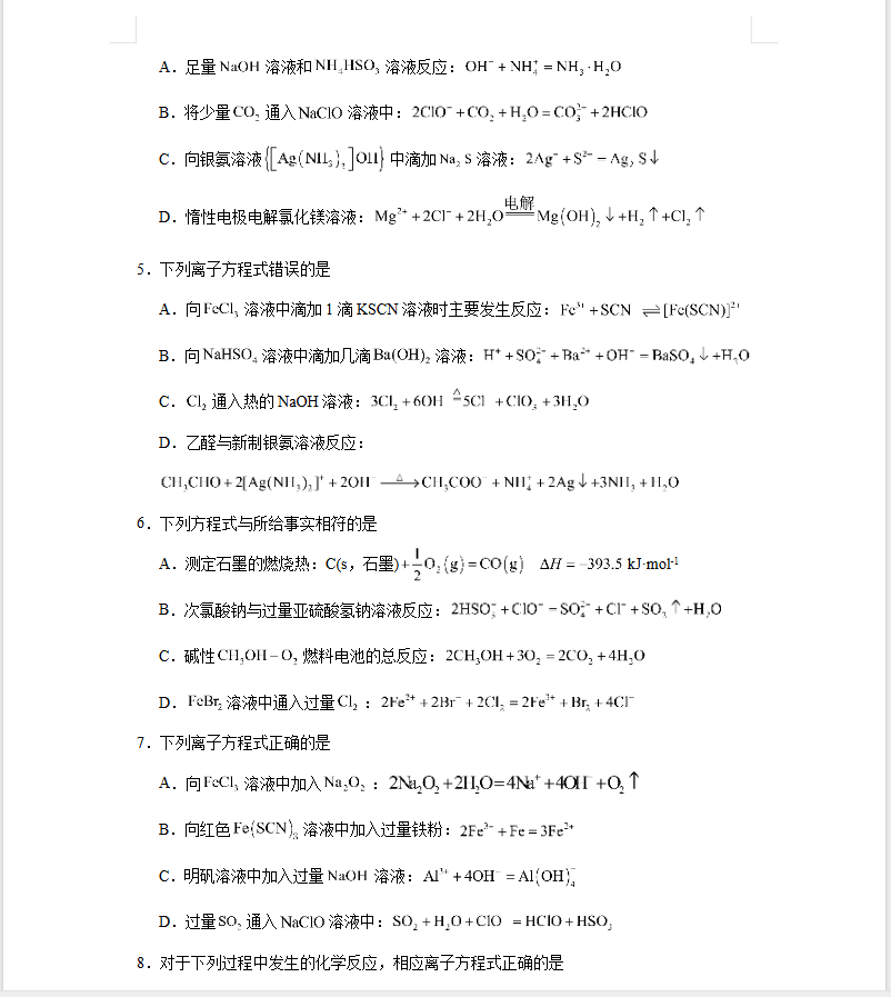 10.离子方程式一2026届高三化学复习选择题专项.docx