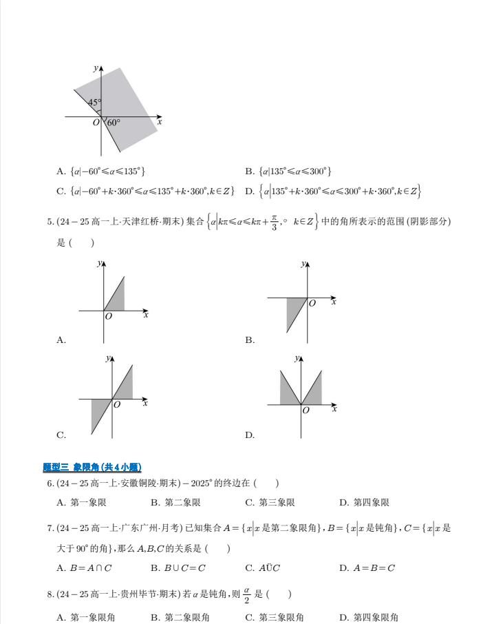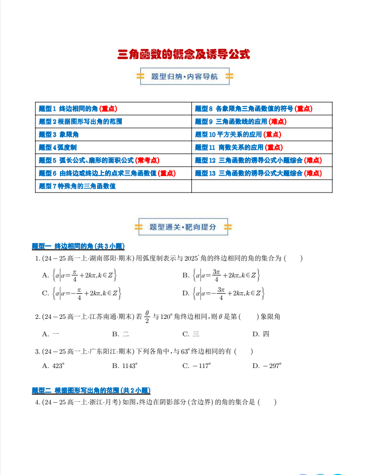 高一数学三角函数的概念及诱导公式(期末专项训练,13大题型60题)