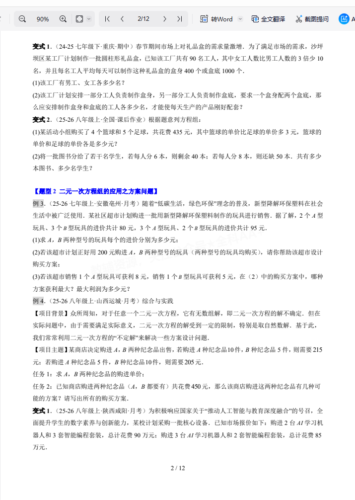 第16讲实际问题与二元一次方程组(2知识点+10大题型+过关测)(原卷版).pdf