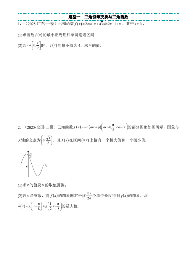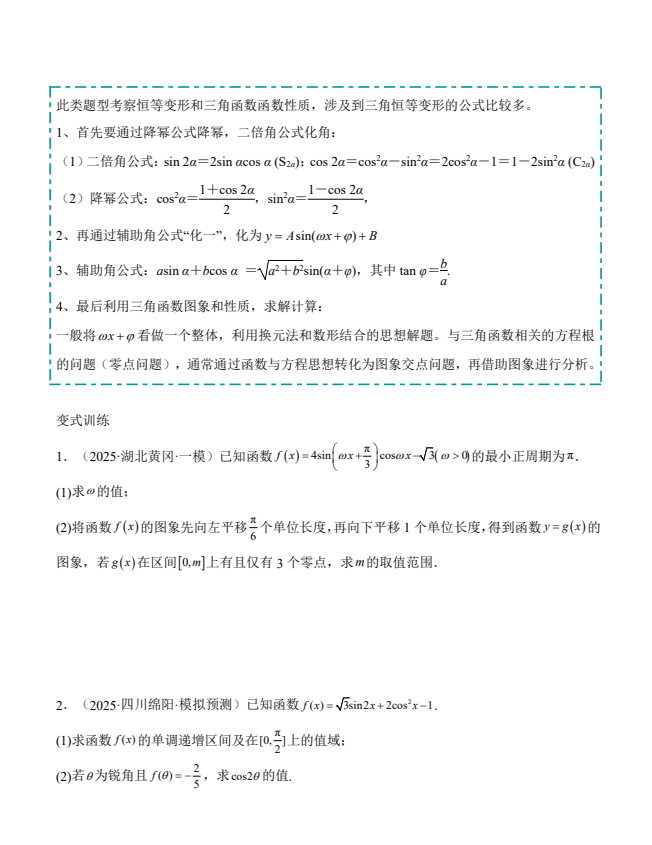 2026高考数学解答题精选精练第一章三角函数、三角恒等变换与解三角形(学生版).docx